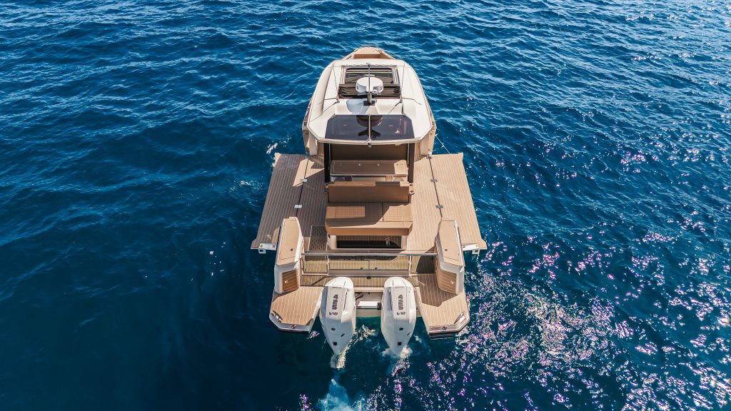 Lightweight construction and a sharp twin-step hull deliver quick acceleration, easy efficiency, and precise, sporty steering. Responsive outboards and balanced hull design keep the boat composed in chop and confident at speed.